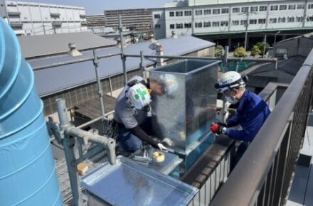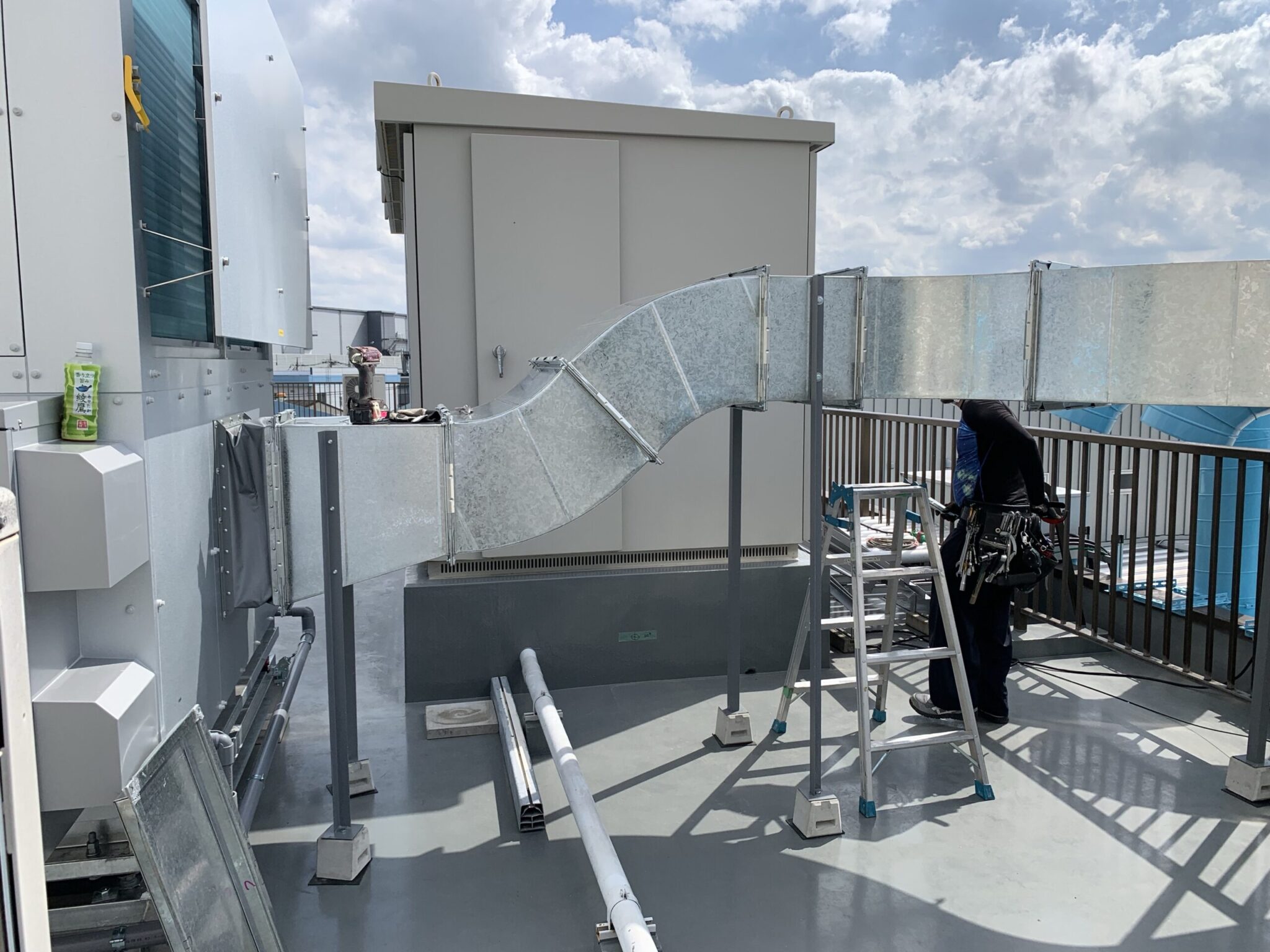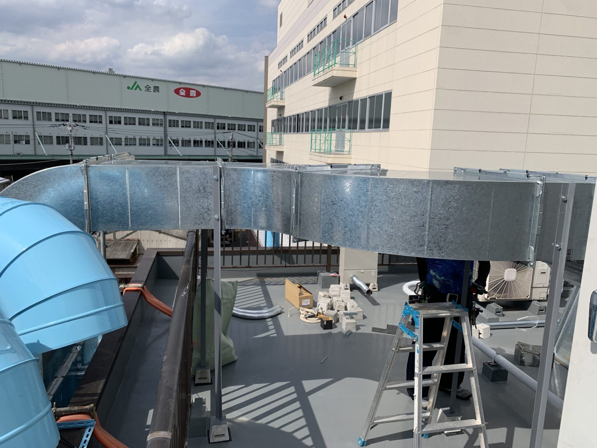 本日は先日埼玉県戸田市にある印刷会社さんからの依頼工事で外部ダクト取付工事の続きをご紹介します。