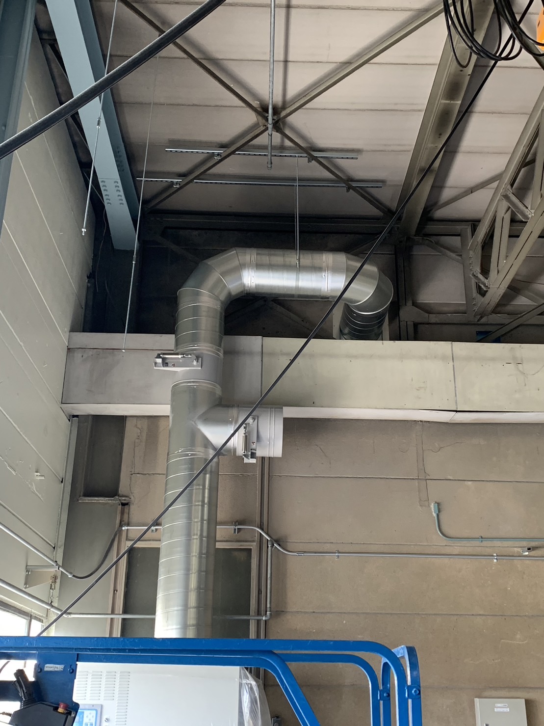 今回は排気がメインの工事です。工場内の埃が多いため排気ダクトを増設です。